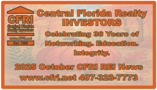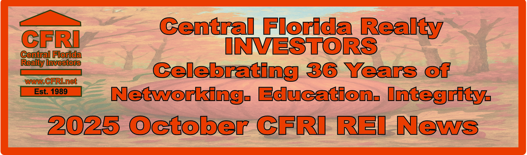 Are you looking for a real estate investment association that will help you learn more about real estate investing? CFRI has been serving the Central Florida area for over 36 years. Our membership includes investors in Orange, Seminole, Osceola, Lake, Brevard, Volusia/Flagler counties.