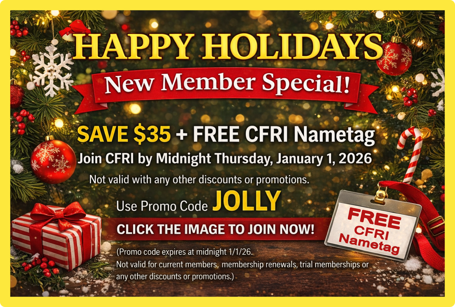 CFRI welcomes its members to make submissions to be featured at a monthly CFRI General Meeting as a Deal of the Month. Deals of the Month are one of the most important educational tools we offer at the General Meeting and, certainly among the most entertaining. While not all submissions will go on to become a Deal of the Month, we appreciate your taking the time to share your deal with us and, possibly our membership. Please Click here tor send an email request to executive@cfri.net to get started. Click here to check out our previous Deals of the Month on CFRI's YouTube Channel.